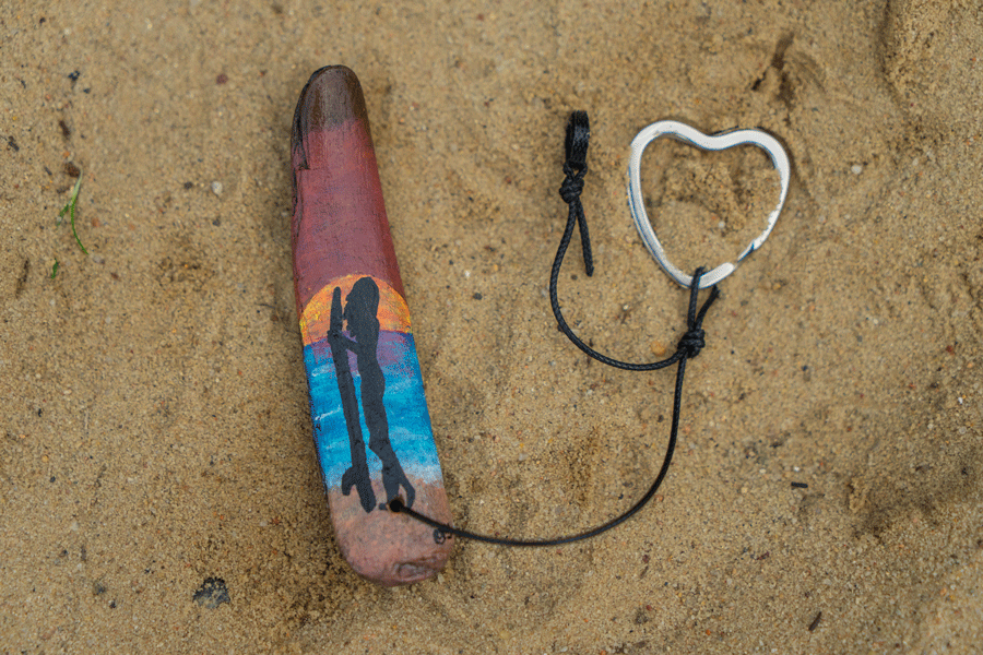 Da die Anhänger aus sylter Treibholz (Naturprodukt) bestehen und per Hand bemalt werden, kann es zu leichten Abweichungen kommen Dies stellt keine Mängel dar.