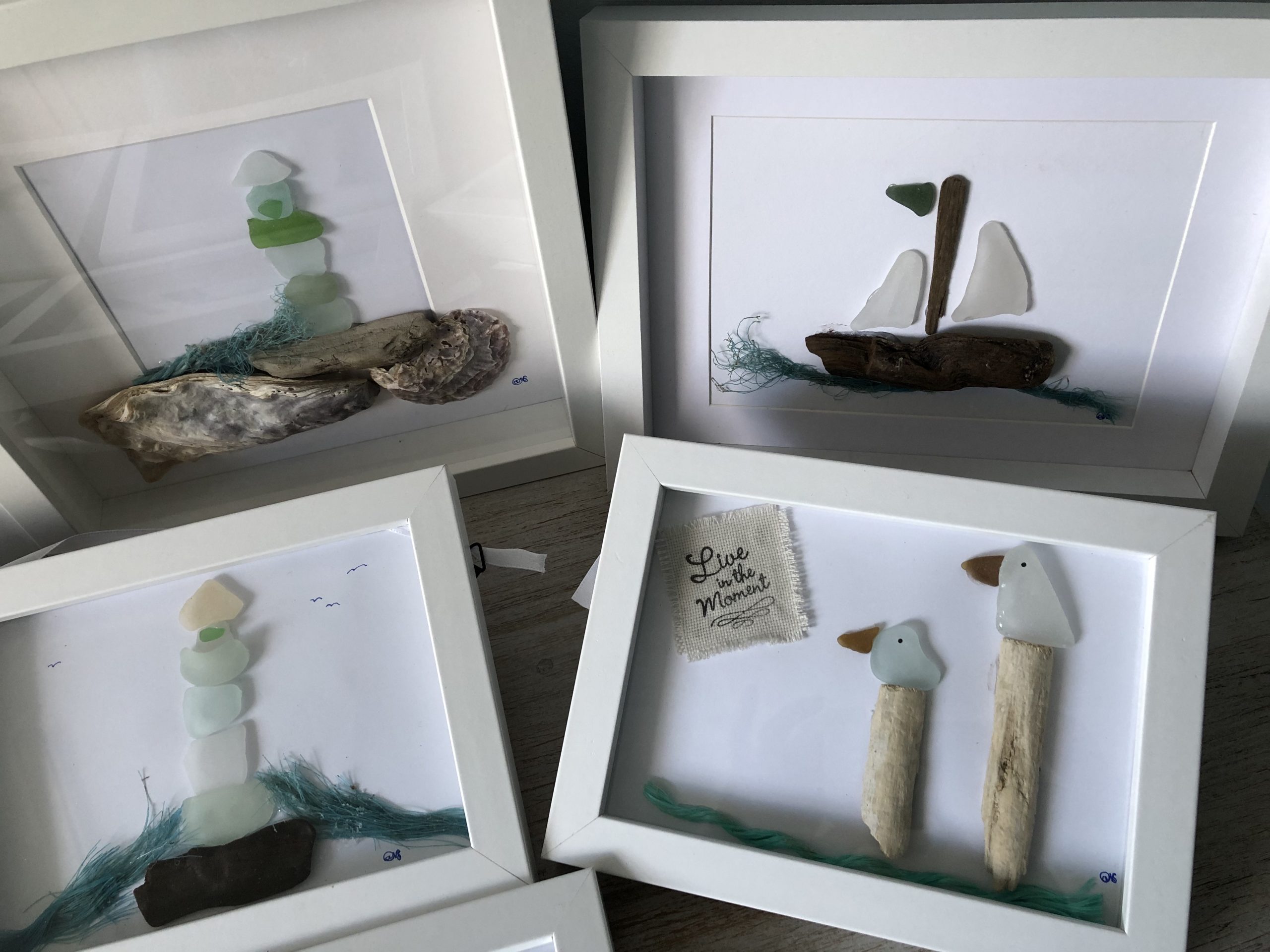 Das Leben am Strand ist das Beste und mit dem Seeglas und Strandgut, welches man dort findet, kann man wunderschöne, einzigartige Bilder herstellen. Mit diesen Unikaten aus sylter Strandgut holst Du Dir das Beachflair ins Haus.? Die Bilder sind teils mit Glasscheibe und teils ohne und sind zum stellen oder hängen. Alle Bilder bestehen aus sylter Seeglas, Treibholz und anderen am Strand gefundenen Schönheiten. Ob als Leuchtturm, Möwe oder als Boot…..ich lasse das Holz und Seeglas entscheiden, wozu es heranwachsen möchte ?